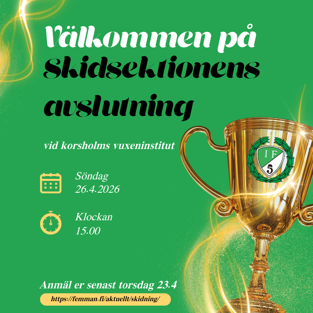 Välkommen på Skidsektionens avslutning vid Korsholms vuxeninstitut 26.4.2026 kl. 15.00.
